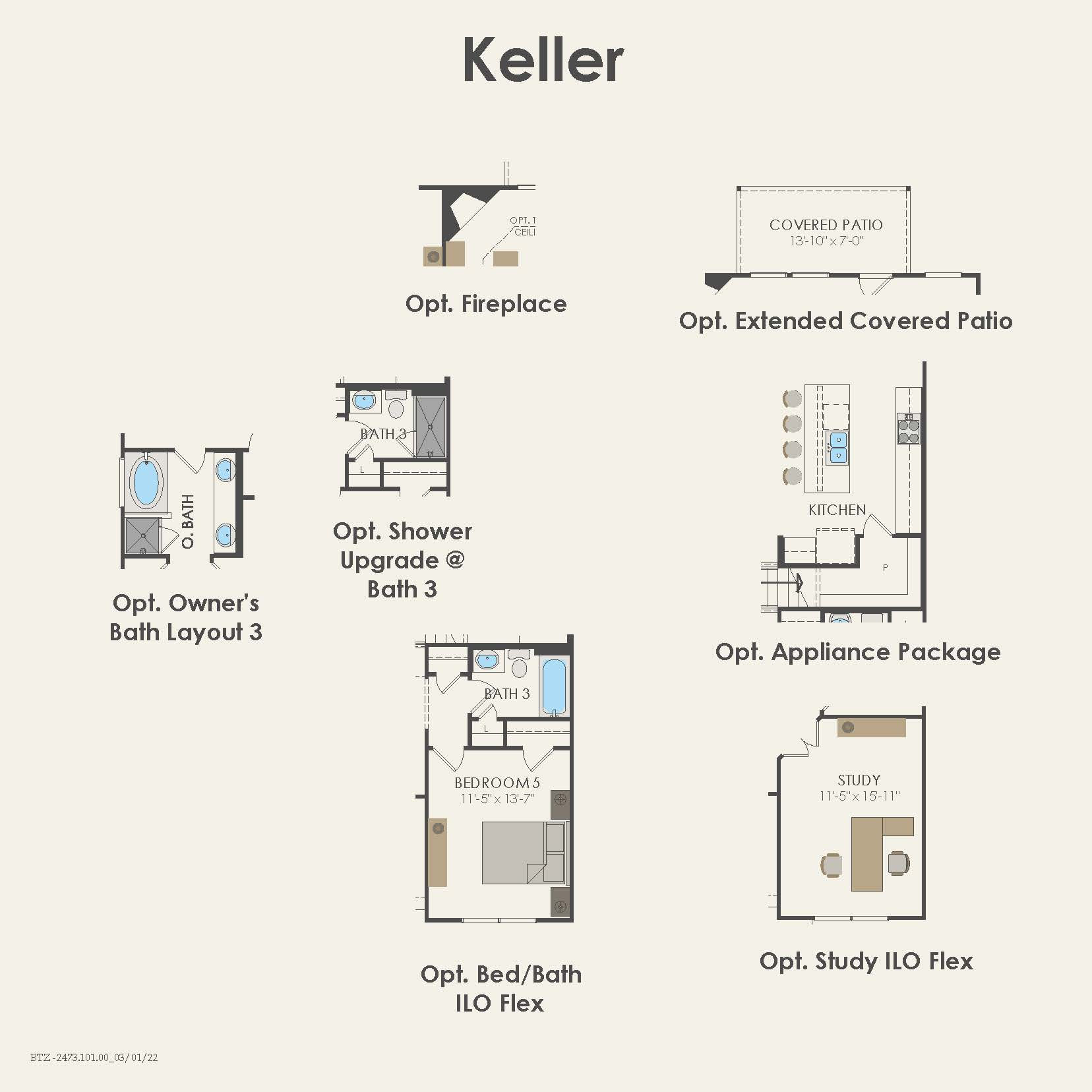 - The Keller features a two-story foyer leading into an open kitchen with eat-in island and oversized walk-in pantry. Follow the staircase upstairs to three additional bedrooms and loft space, perfect for the kids to getaway and play.